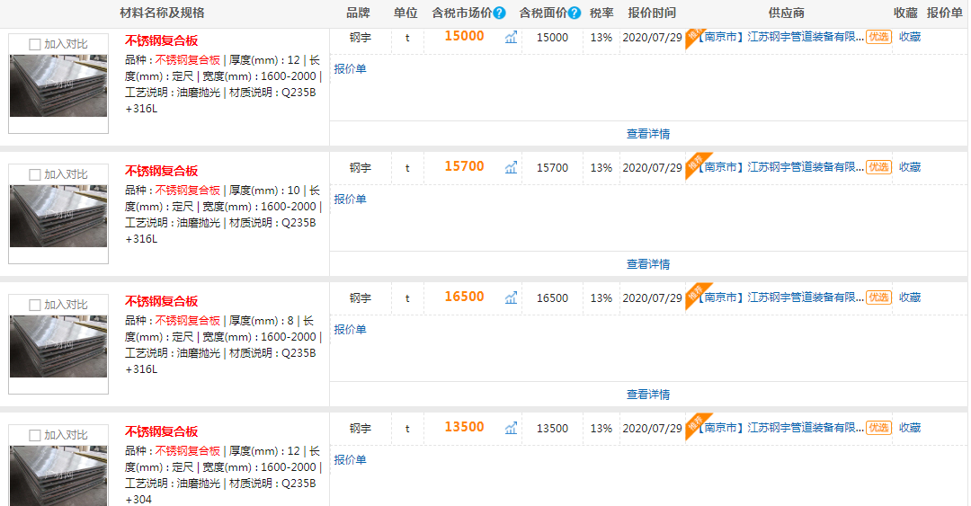 3、不锈钢复合板具有良好的导热能力,又具有防腐蚀功能,可大量用于焦化设备。如使用于蒸氨塔,可以提高蒸氨塔的使用寿命,降低运行成本;另外一方面因其防腐性能,又能应用于蒸氨设备。